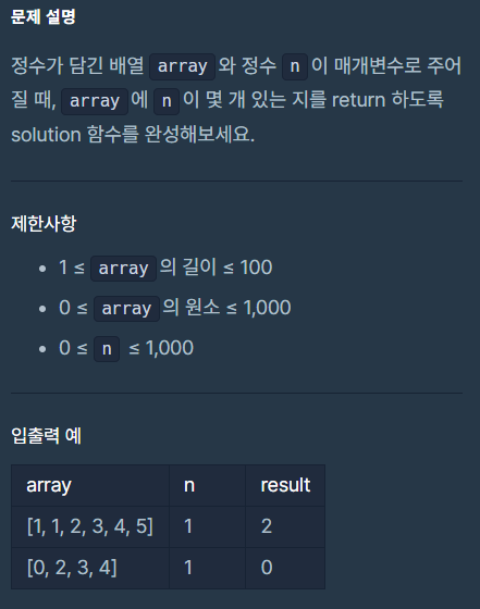 return (int) Arrays.stream(array).filter(i -> i == n).count();