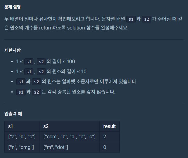 public int solution(String[] s1, String[] s2) {