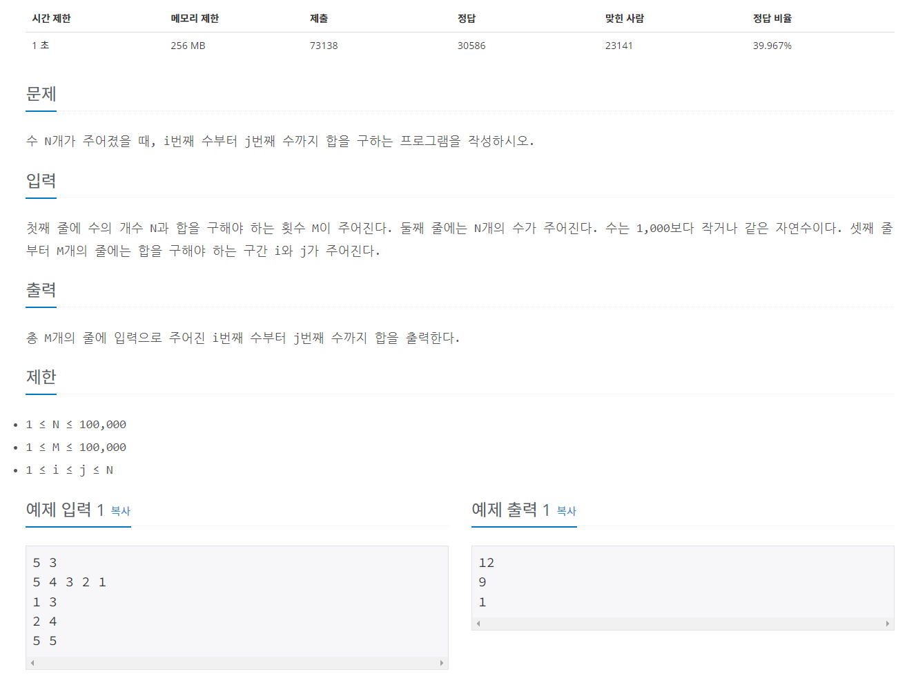 System.out.println(sumArr[end] - sumArr[start - 1]);