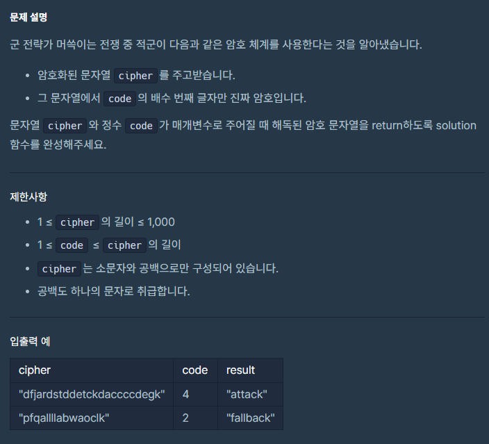 for(int i=code-1; i<cipher.length(); i+=code) {
