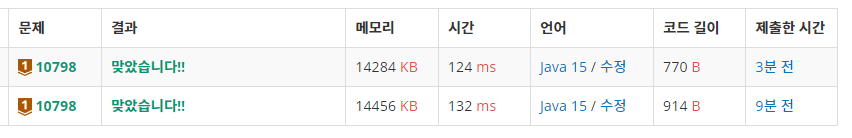 결과 - (위) 2번째 풀이, (아래) 1번째 풀이