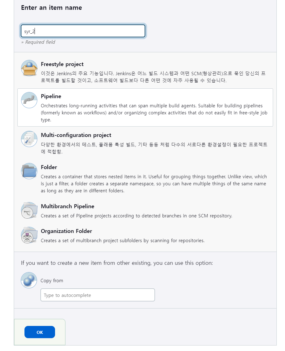 * jenkins 파이프라인 이름이 syr_1 일 경우