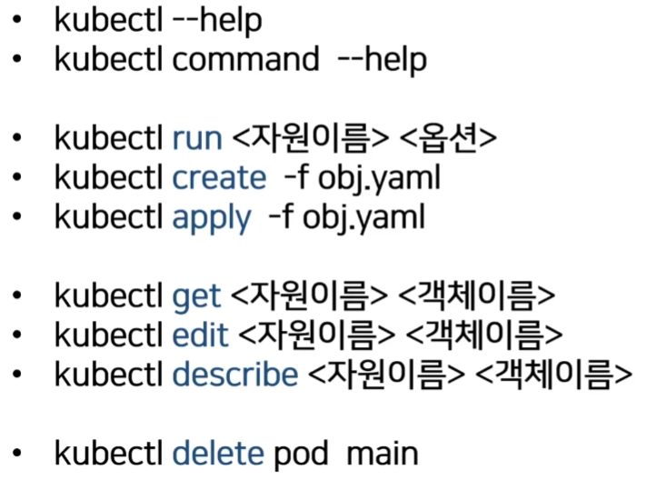 command : 자원(object)에 실행할 명령(ex. create, get, delete, edit ...)