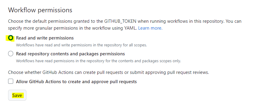 리포지터리 Settings > Actions > General > 아래와 같이 변경